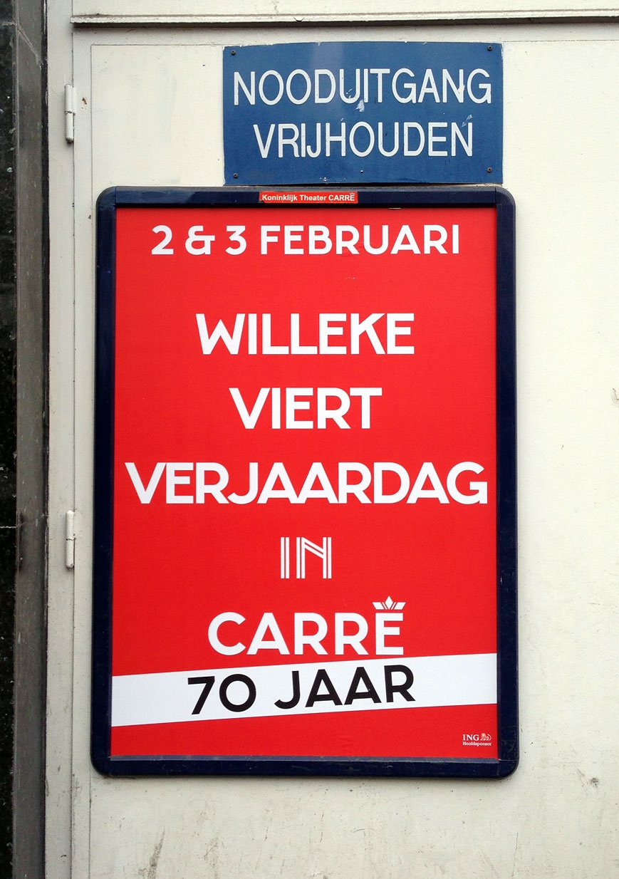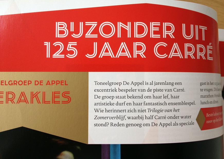 Citizens of Amsterdam will be familiar with the theatre’s iconic posters that can be found at dedicated spots in the city throughout the year. These posters — produced in-house following a design by studio Thonik — always feature a bright red background and simple, powerful typography in white.