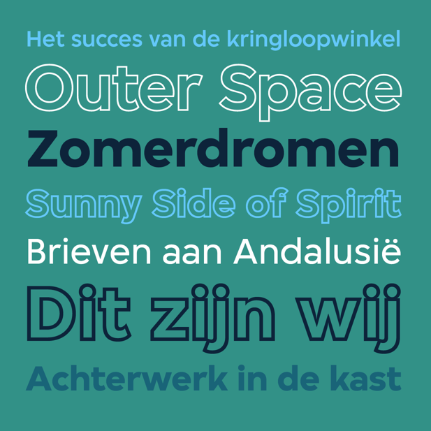 With a generous x-height and its playful details, the typeface is designed to feel most at home in larger sizes and display applications.