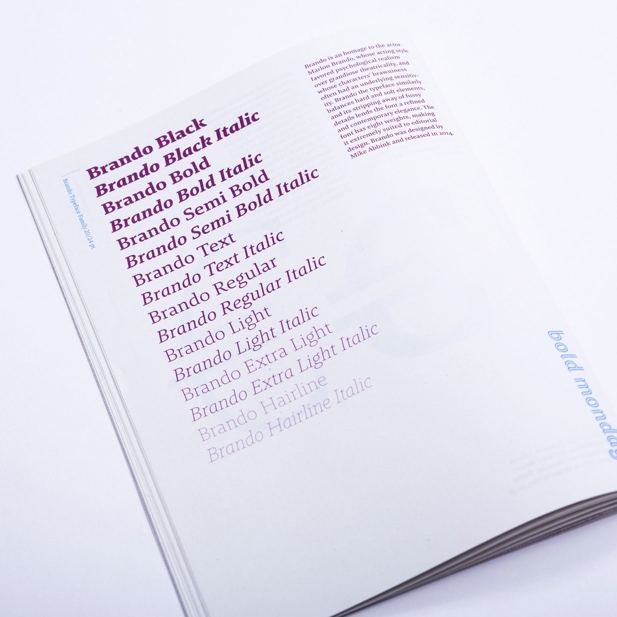 Five type specimens for the price of three! Get the Brando, Brando Arabic, Mala, Quinn and Dico type specimens for only € 15.—. It’s a steal!