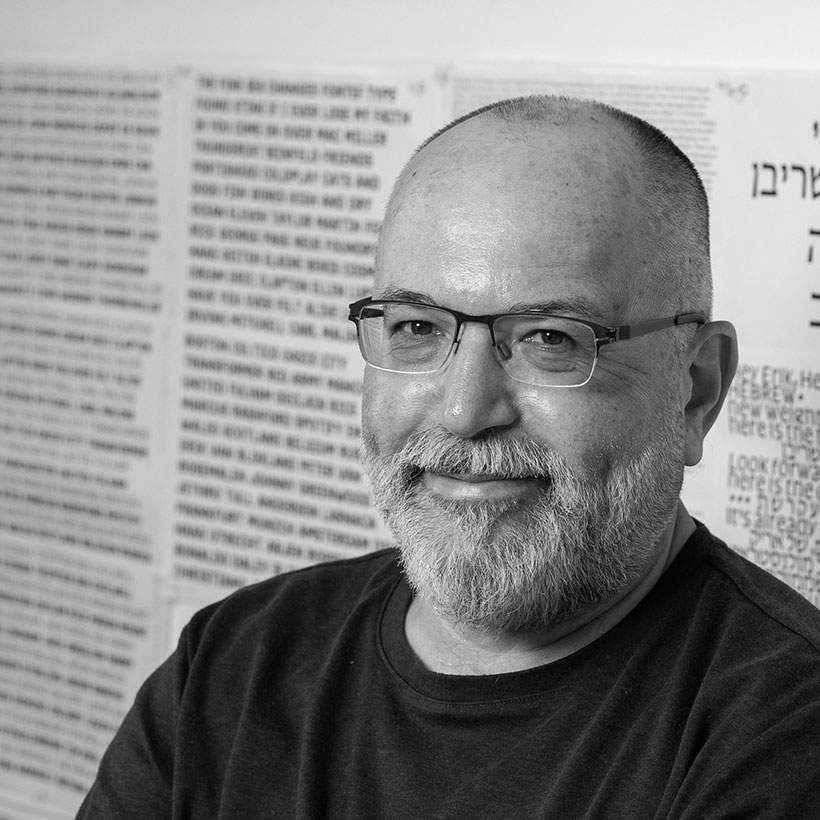 Yanek Iontef is a type designer and typographer. Born in the former USSR, he emigrated to Israel and studied graphic design at the Bezalel Academy of Arts and Design in Jerusalem. He has taught typography and type design at the Bezalel Academy and Shenkar College of Engineering and Design. In 1994, Yanek founded Fontef, an independent type foundry, and in 2021, he received the Rothschild Foundation award for graphic design for his lifelong work in preserving and reviving the Hebrew language.