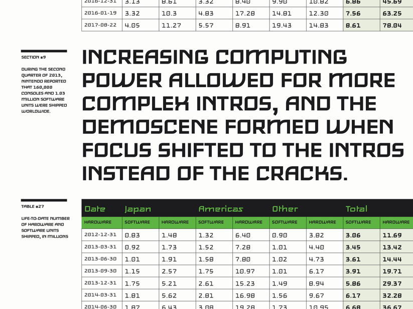 Feisar is a display typeface that happily marries the aesthetics of 1970s science fiction, 1980s video gaming and 1990s techno culture.