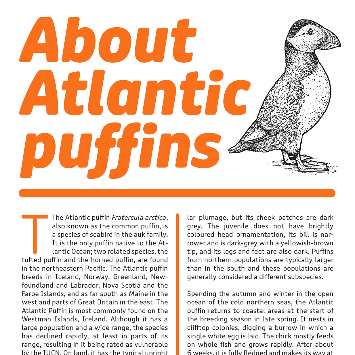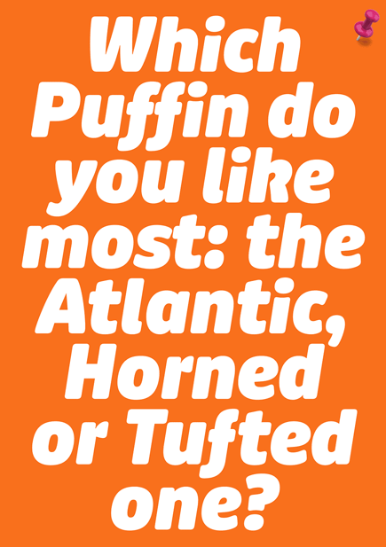 Puffin Display and Puffin Display Soft, in comparison, are more flavourful: distinctly curved letterforms, especially in the swinging true italics, or rounded terminals in Puffin Display Soft make you feel right at home and on first-name-terms with it. The Display styles have a taller x-height and slightly tighter spacing that fit all kinds of personable applications in medium to large font sizes. And for an extra dose of playfulness – be it in posters or video games – combine them with Puffin Arcade.
